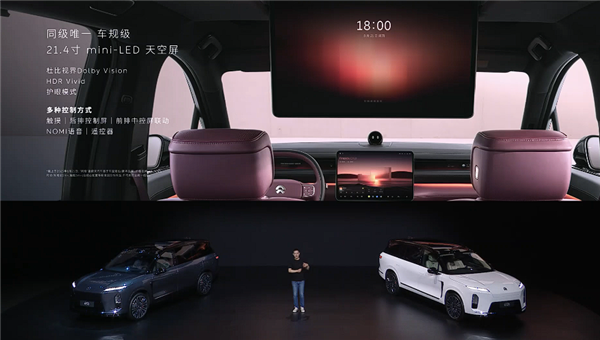该屏幕集成独立安卓系统与语音控制功能,李斌介绍了这款车首发搭载的“天空屏”,最高亮度1000尼特,